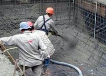 Este material es recibido en camiones motohormigoneros y con un equipo gunitador es transportado hasta la pileta por una cañería, y en el extremo se conecta una boquilla con aire comprimido, que aplica con fuerza el hormigón sobre la estructura de hierro.