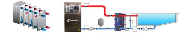 Los climatizadores de piscina eléctricos Flowing están diseñados para ser instalados directamente en los sistemas de filtración de su piscina. El calentamiento de la piscina es indirecto, a través de un intercambiador de calor de placas, lo cual facilita las tareas de mantenimiento y extiende la vida útil del equipo por más años. Este sistema además, permite calefaccionar aguas saladas o aguas termales, ya que las placas de Inoxidable AISI 316 pueden ser reemplazadas por placas de TITANIO para estas aplicaciones especiales. Por su diseño innovador, al contar con un circuito primario y una secundario, es posible utilizarlo simultáneamente como caldera de calefacción y como climatizador de piscina.